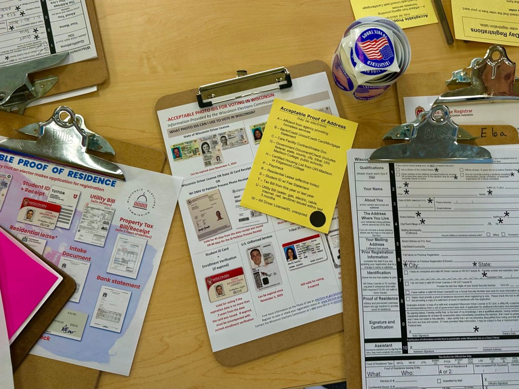 If you are registering, bring proof of residence. For UW–Madison students, that can include a Voter Enrollment Verification Letter, a lease, a utility bill, a bank statement, or a UW fee statement.
